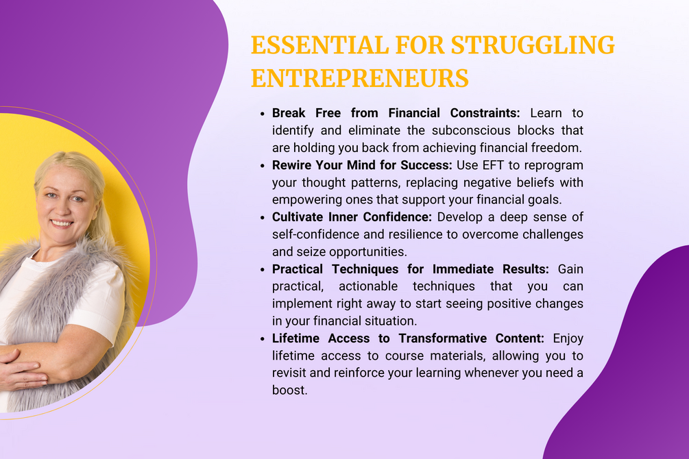 - Module 2: Healing Financial Traumas: Use EFT to address and transform negative beliefs and past financial traumas, creating a positive flow of energy and improving your relationship with money.