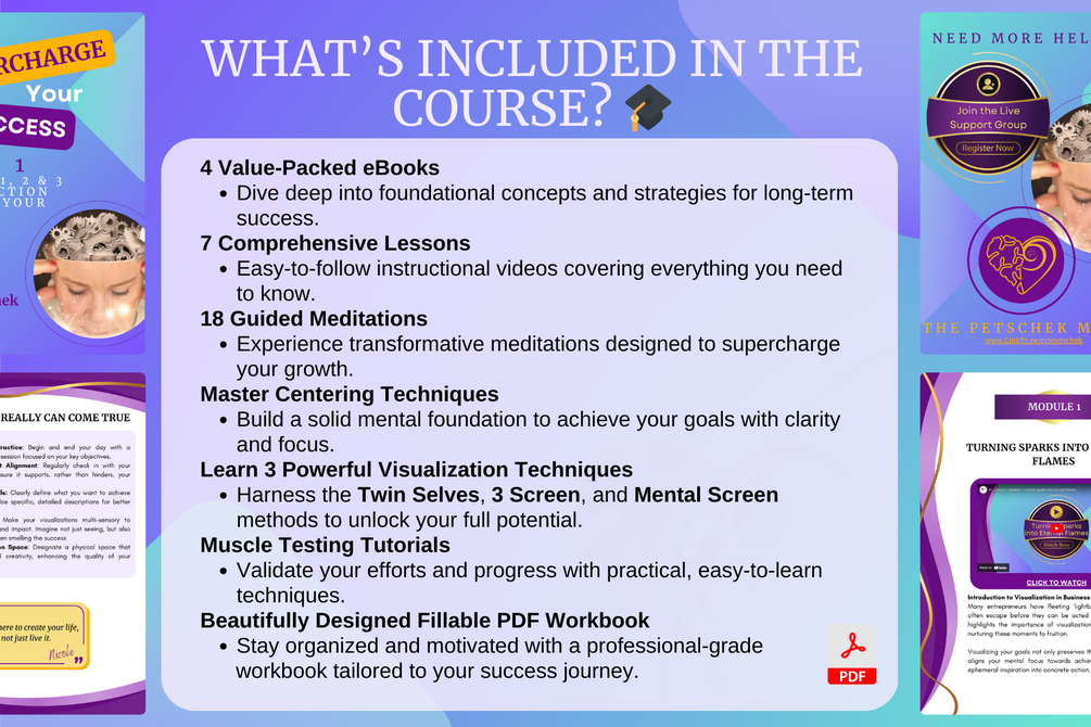 Are you a business owner or startup entrepreneur ready to break free from limiting beliefs and step into a financially abundant future? The Supercharge Your Success Course is your ultimate 9 week guide to mastering the art of visualization, harnessing the power of your subconscious, and aligning your daily actions with your deepest goals.