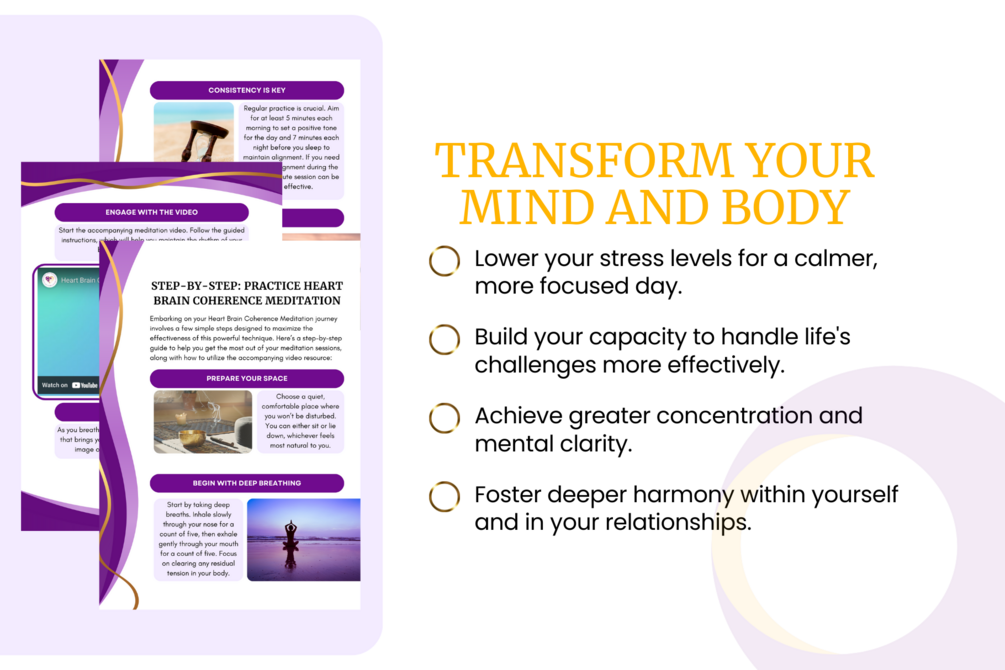 • 🪄 A beautifully designed 8-page eBook with step-by-step instructions. • 🎥 Exclusive access to our Heart Brain Coherence Meditation video.